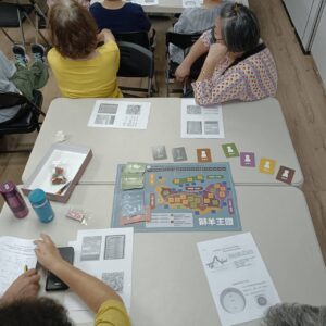 活動一開始,大家對桌遊規則充滿好奇,隨著回合進行,現場逐漸充滿笑聲與討論聲。